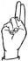 На ћирилици написано ВАЛЕНТИНА АЦАМОВИЋ састоји се из 17 слова [?]. Исписано ћириличном једноручном азбуком за глувонеме: